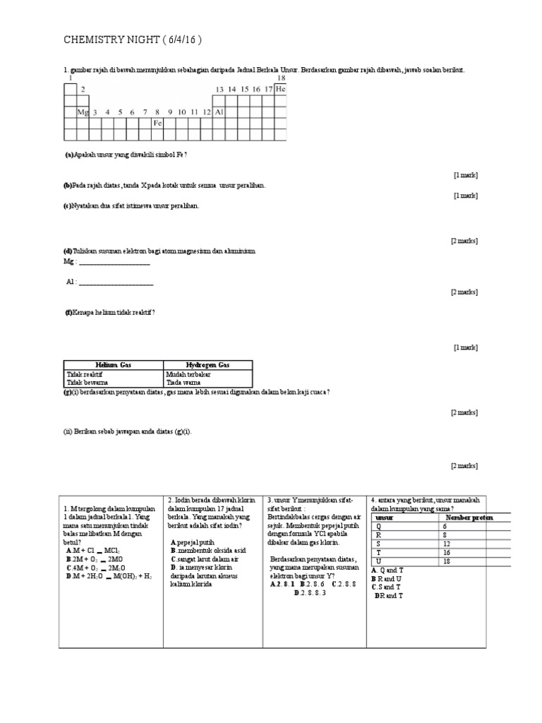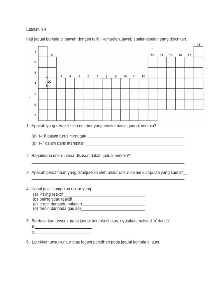Membawa masuk sebarang catatan sama ada pada pakaian atau anggota badan, nota, dokumen seperti buku, lukisan, grafik, akhbar, kamus, kertas, jadual waktu peperiksaan, kenyataan kemasukan peperiksaan, telefon. Pendekatan interaktif terhadap bahan latihan lebih berkesan daripada konvensional. Kimia tingkatan 4 bab 4 jadual berkala | kedudukan unsur dalam jadual berkala unsur подробнее. Unsur ini disusun menurut struktur elektron agar kebanyakan sifat kimia berubah secara tetap sepanjang jadual. Buku teks kimia tingkatan 4 kurikulum standard sekolah menengah (kssm) ini ditulis.